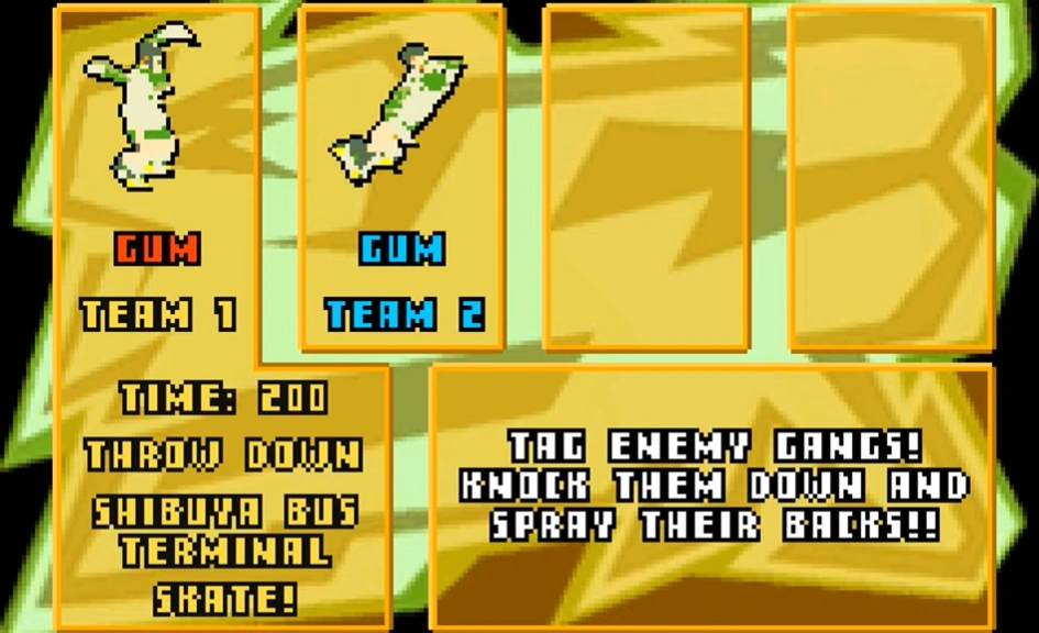 In the multiplayer mode of Jet Set Radio GBA, it is referred to as "Throw Down" instead. Additionally in JSR GBA, only two players can compete in Thrown Down instead allowing for four players like in JSRF.